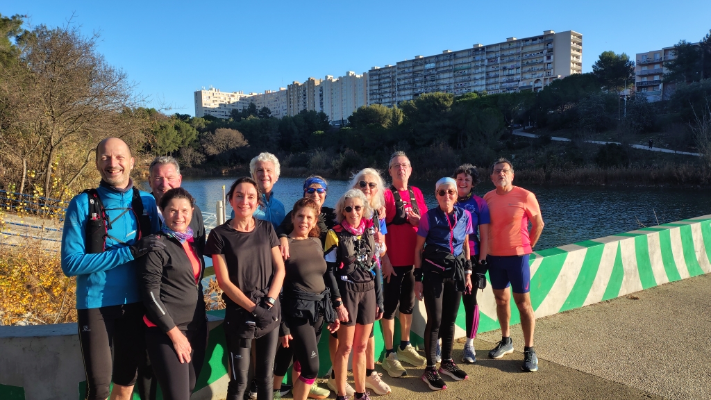 Tout d’abord en mode « garrigue » activé par Patrick sur les beaux chemins techniques de la Gardiole ; 14 km de pur plaisir et d’évasion et un peu plus de 200 m de D+ pour un joyeux groupe de 16 coureurs unanimement ravis par cette escapade dominicale.