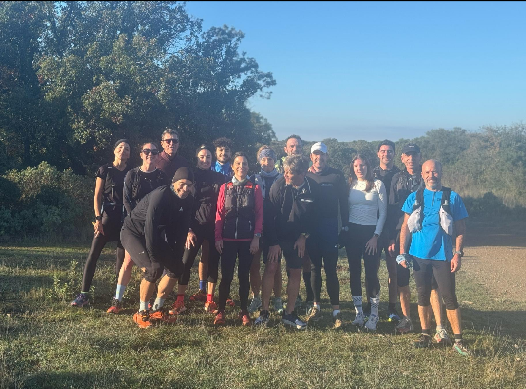 Tout d’abord en mode « garrigue » activé par Patrick sur les beaux chemins techniques de la Gardiole ; 14 km de pur plaisir et d’évasion et un peu plus de 200 m de D+ pour un joyeux groupe de 16 coureurs unanimement ravis par cette escapade dominicale.