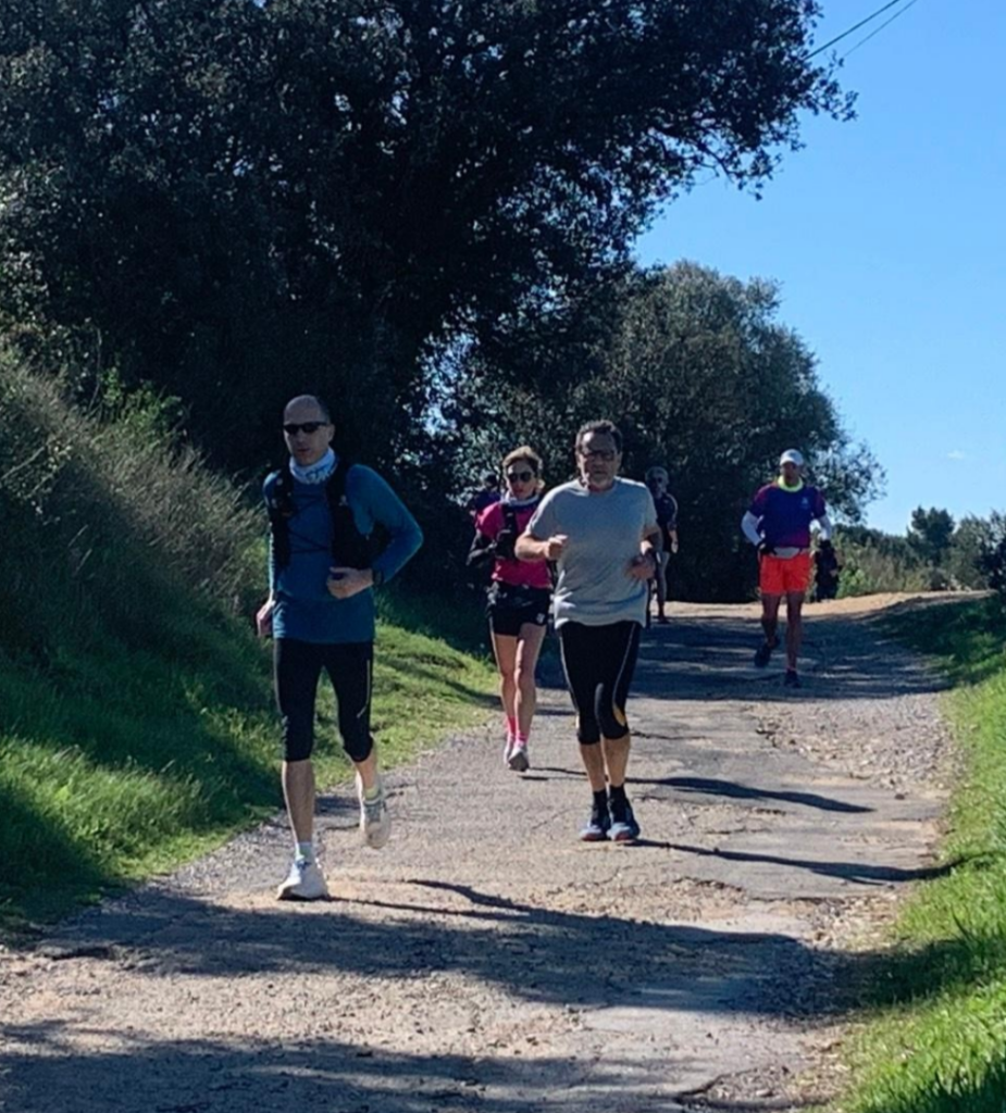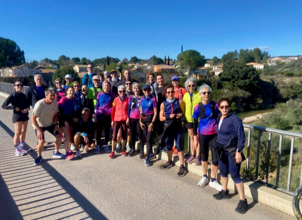 Maeva, en véritable chef d’orchestre, avait prévu une sortie longue ce dimanche ; direction Pignan pour 28 motivés sur un parcours initial de 20 km. (Pas de chaises ni de squats : elle garde ça secrètement pour les entraînements de la semaine)