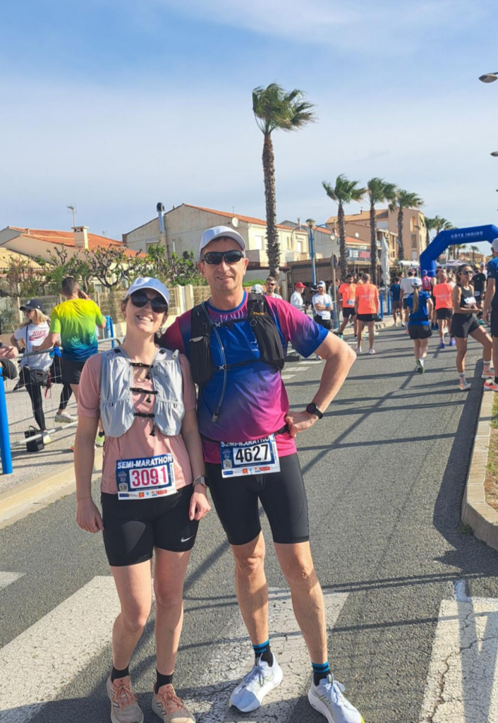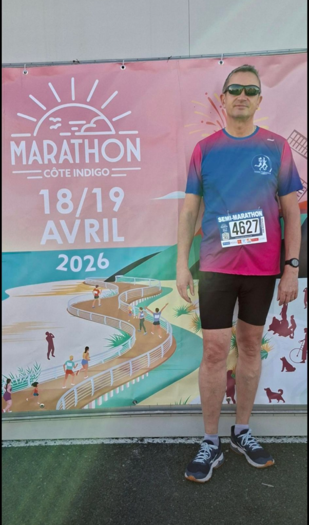 Pendant que certains jardinaient… d’autres étaient en mode compétition. Sur le 10 km de la Côte Indigo, du côté de Fleury dans l’Aude, Alex s’est fait plaisir : 44 minutes au compteur, sourire aux lèvres à l’arrivée pour cette sortie en famille. Bravo à toi pour cette belle perf et ce solide 4’28/km ! Dominique, lui aussi en famille, s’est attaqué au format semi : 2h10, et toujours le sourire à l’arrivée.